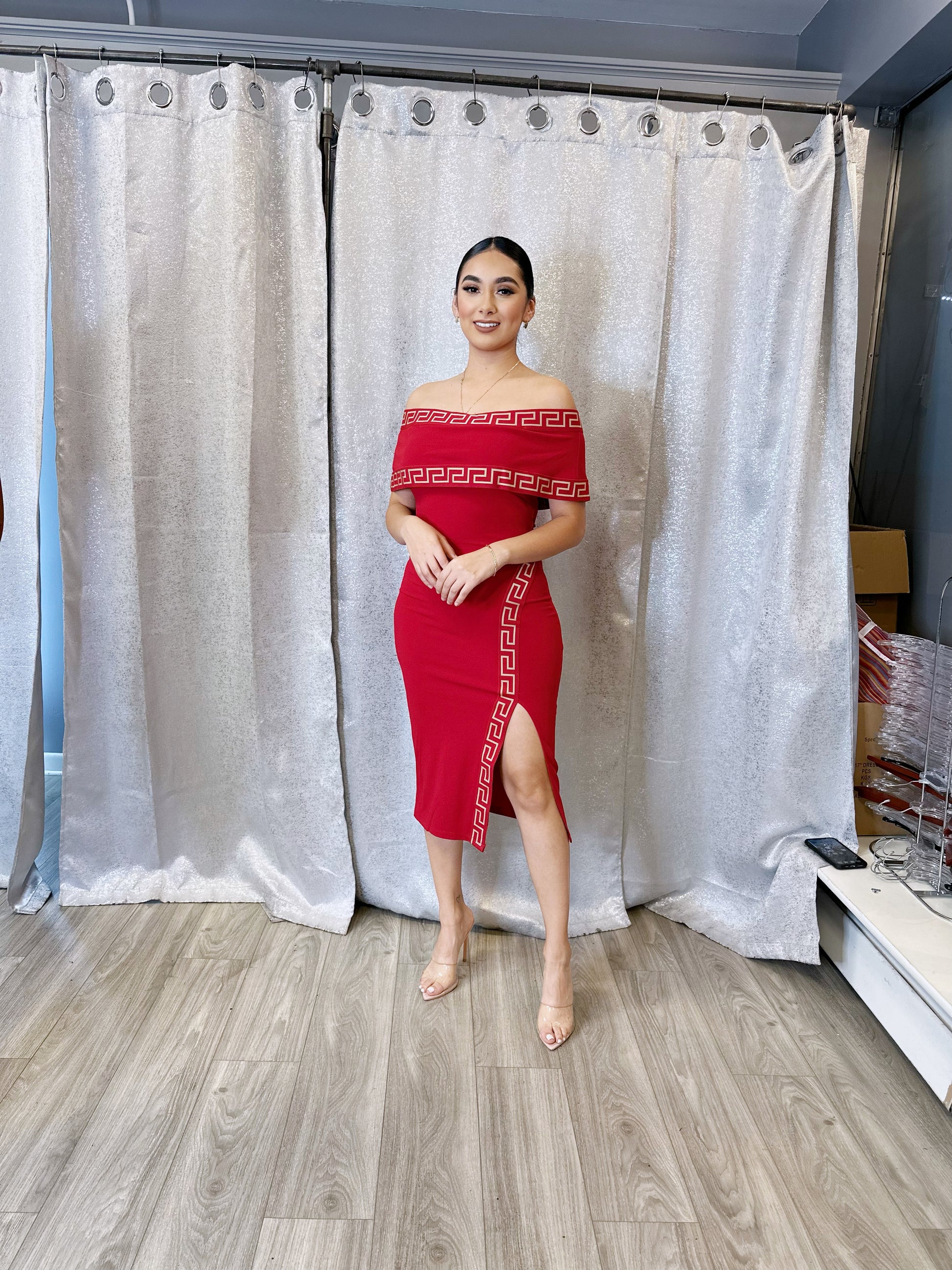 - Off Shoulder Midi Dress